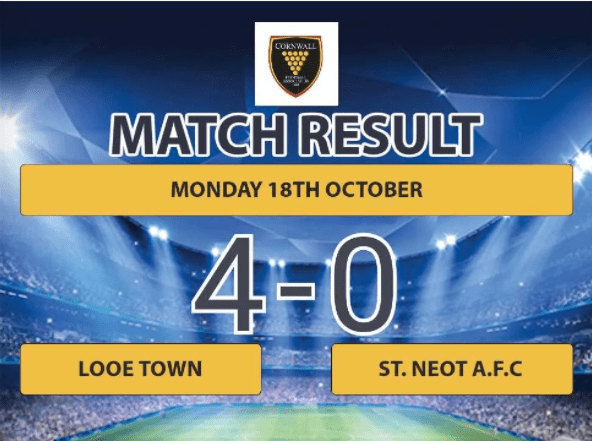 In the search for a goal, St. Neot pushed well up the field. Looe played long balls over the top to the pacey wingers, and were the downfall of St. Neot on this occasion. Blaxley made a couple of superb saves in the St. Neot goal, but he unfortunately conceded a further two, to put the game beyond doubt.