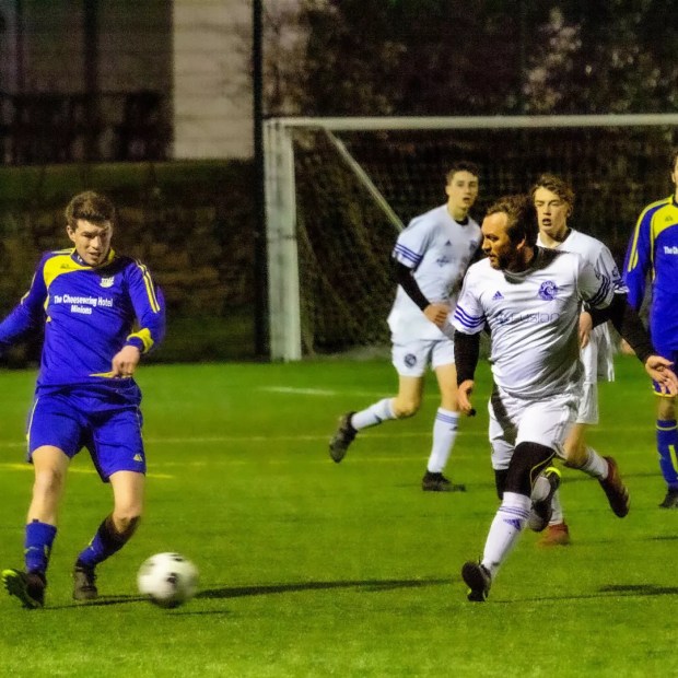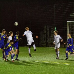 Somewhat disappointingly one of the many attempted through balls from Polzeath midfield managed to split the high line of St. Neot defence. A sterling rear-guard action by German and King prevented some vicious strikes from the Polzeath forwards. O’Regan again managed to tip the ball on to the upright, a valiant sliding tackle from King prevented yet another strike but the deflection fell to Polzeath’s Aaron White, whose snap shot whistled past O’Regan to nestle in the back of the net.