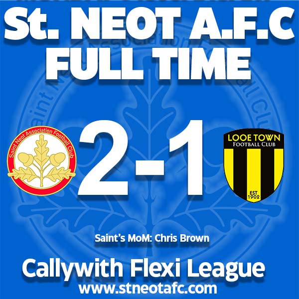 This game was a must win for both teams in their pursuit of reaching the semifinals of the Cornwall FA Flexi League. For St Neot, this was their final game of the league element, a win and they confirmed second spot, a draw would leave them in limbo and a loss… that wasn’t in any of the Saints players’ vocabulary. For Looe it was two fixtures to determine their league standing. The pressure was all on the Saints.