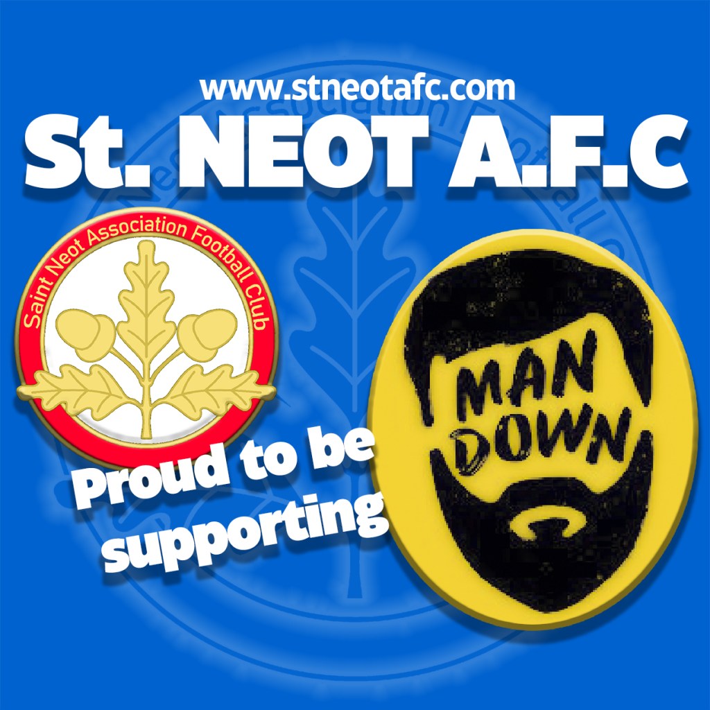 Here at St. Neot AFC, we have decided that the charity we will support will be ‘Man Down’ and we will show this support by putting their logo on a new away kit… (if we can get one)