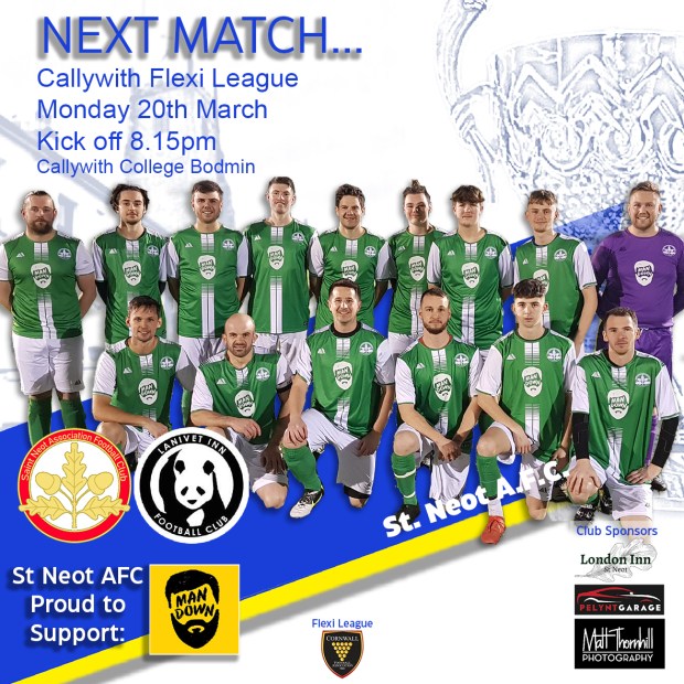 We don’t have a match sponsor for our final Cornwall FA Flexi league game next week vs Lanivet Inn FC so we are having a fundraiser instead for our supported charity Man down – supporting men’s mental health.